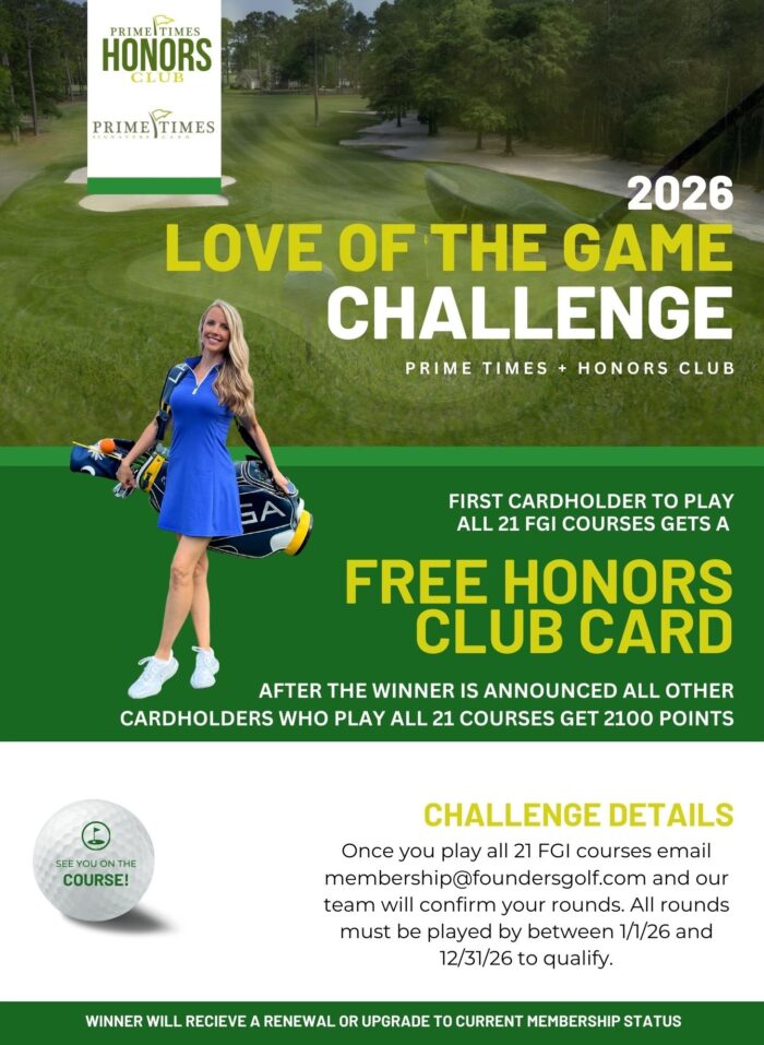 We look forward to continuing the Love the Game Challenge in 2026. The first person to complete the “Challenge” will receive an Honors Club renewal adding a year to your existing active membership.